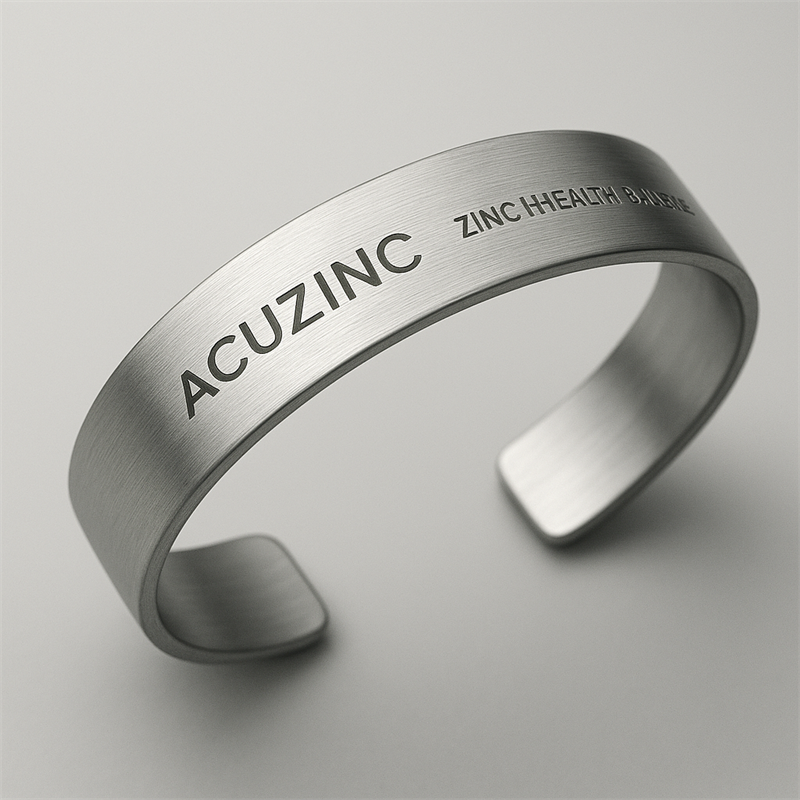 The Akuzinc Bangle (Band of Life) is manufactured using high quality pure uncoated zinc. Each bangle is hand made and polished to a high standard. Although we are unable to guarentee that this product will heal you the benifits of zinc are widely recognised as an essential suplement to aid good health and well being. We firmly believe that there is no better way to ensure against zinc deficiency than to wear an Akuzinc Bangle.